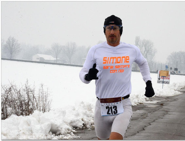 Mi è venuto spontaneo ricordare la sua figura correndo ieri mattina la Maratona delle Terre Verdiane, in un ambiente, dai contorni imprecisati, del quale s'è impadronita la neve col suo bianco candore ammantando i campi. Un quadro naturalistico dove, osservandolo, si perdeva l'orizzonte....